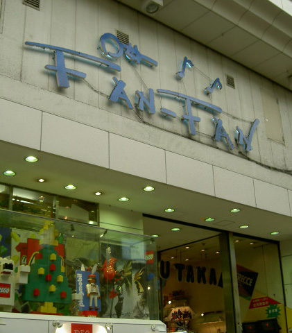Leksaksaffären “Fan-Fan” specialiserar sig kanske på de allra mest irriterande leksakerna. När man translitererar engelskans “fun” till japanska så blir det “fan”.