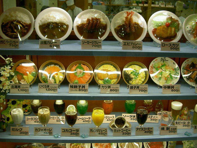Plastmat. En berömd japansk metod att visa vad en restaurang erbjuder är att låta alltihop skulpteras i trogen plast. Det görs väldigt skickligt och har varit populärt åtminstone sedan början av 80-talet.