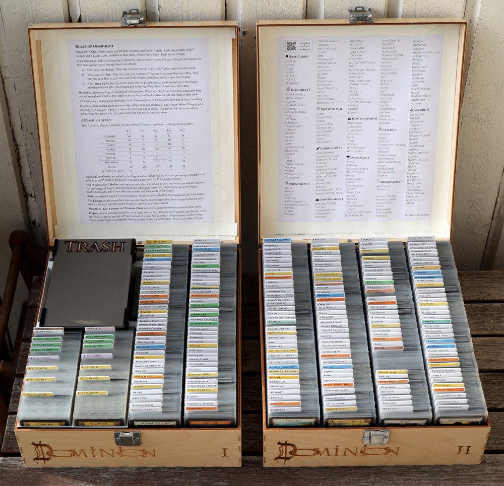 The 2011 box had room for the original rules booklets inside the lid. The 2022 solution replaced those with 2D-printed summary sheets.