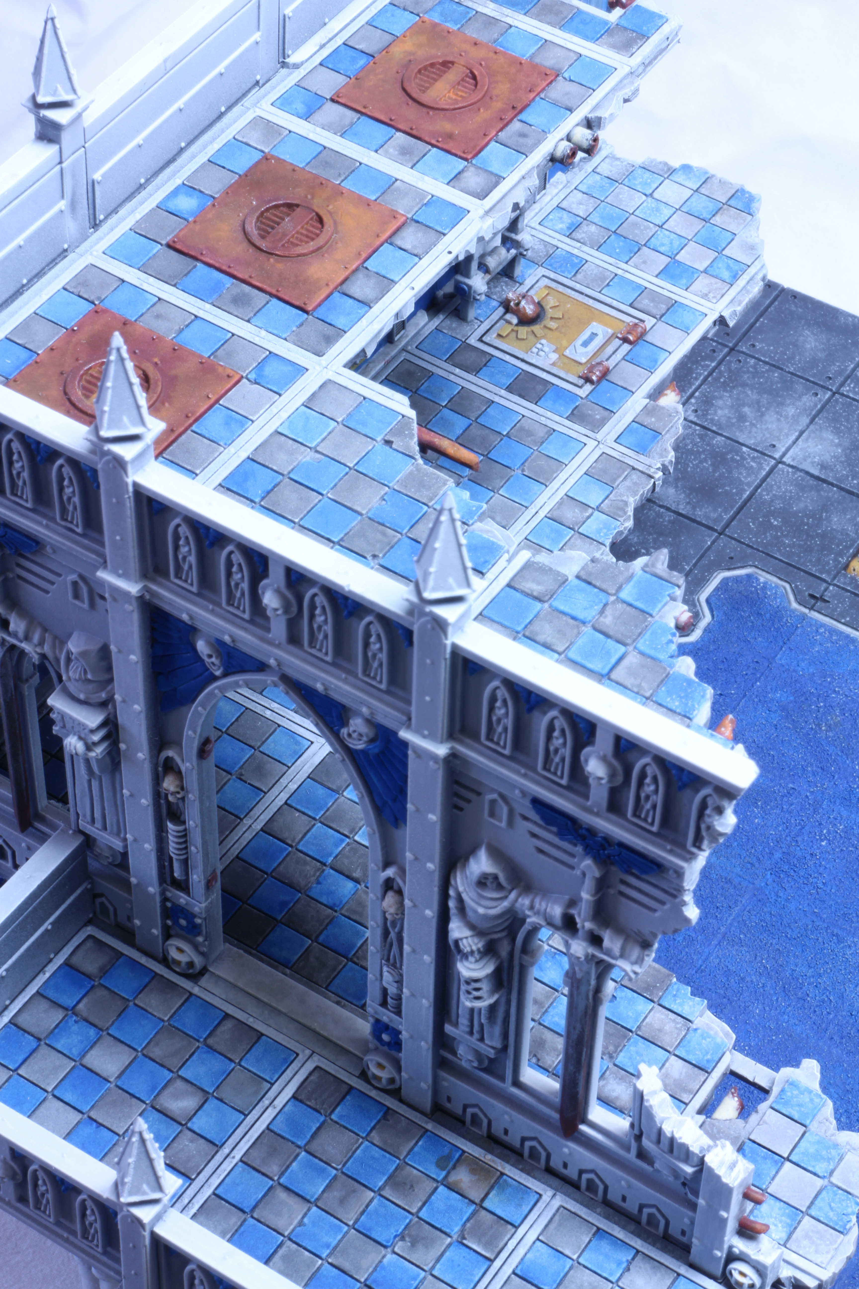 Basilica Administratum 6 I do not like the GW floors as they're sold. In the Sanctum model I covered the channels between the GW floor tiles with cardboard. On this Basilica model I removed the protrusions on a routing table. In galleries: Basilica AdministratumHirst Arts Citadel Miniatures miniature terrain