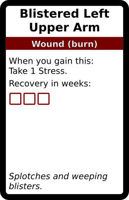 Blistered Left Upper Arm 1 copy. In galleries: Burn Wound deck Horror Cards graphicsCreative Commons Horror Cards game design TRPG