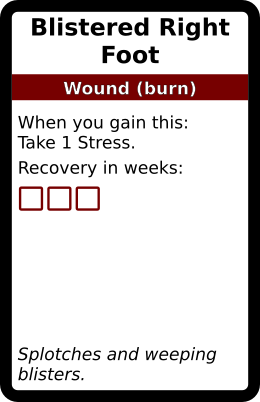 Blistered Right Foot 1 copy. In galleries: Burn Wound deck Horror Cards graphicsCreative Commons Horror Cards game design TRPG