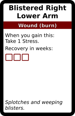 Blistered Right Lower Arm 1 copy. In galleries: Burn Wound deck Horror Cards graphicsCreative Commons Horror Cards game design TRPG
