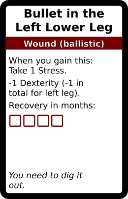 Bullet in the Left Lower Leg 1 copy. In galleries: Ballistic Wound deck Horror Cards graphicsCreative Commons game design TRPG Horror Cards