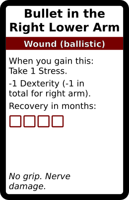 Bullet in the Right Lower Arm 1 copy. In galleries: Ballistic Wound deck Horror Cards graphicsCreative Commons game design TRPG Horror Cards