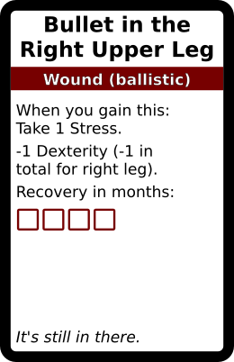 Bullet in the Right Upper Leg 1 copy. In galleries: Ballistic Wound deck Horror Cards graphicsCreative Commons game design TRPG Horror Cards