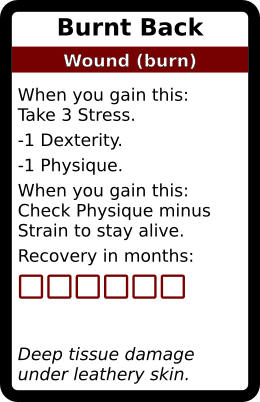 Burnt Back 1 copy. In galleries: Burn Wound deck Horror Cards graphicsCreative Commons Horror Cards game design TRPG