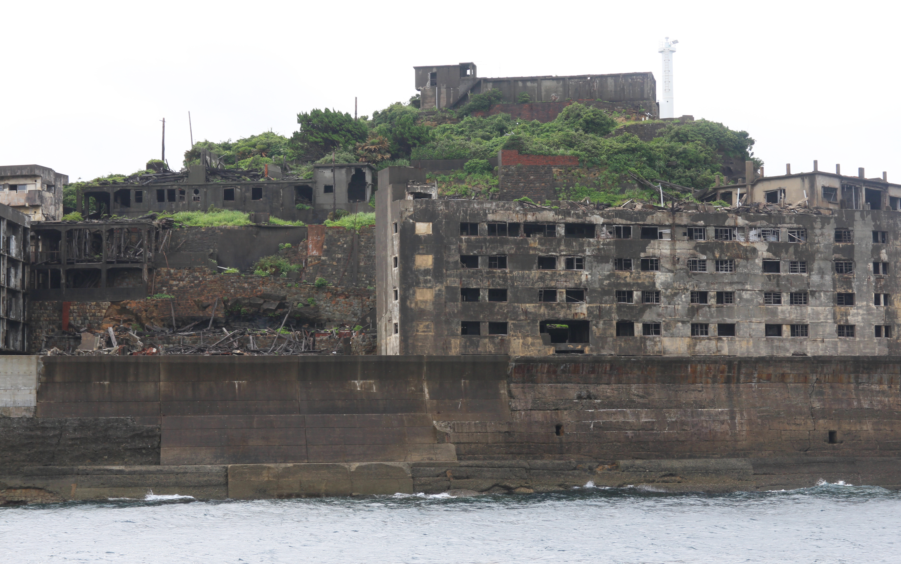 Närmast vattnet i mitten på bilden står byggnad nummer 31, byggd 1957. Det var ett smalt bostadshus med bland annat frisör och postkontor på nedersta våningen. Strax ovanför muren (strandskoningen utan strand) syns ett hål hela vägen genom tredje våningen, med en strimma av grönt synlig på kullen bakom.