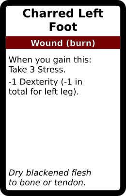 Charred Left Foot 1 copy. In galleries: Burn Wound deck Horror Cards graphicsCreative Commons Horror Cards game design TRPG