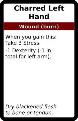 Charred Left Hand 1 copy. In galleries: Burn Wound deck Horror Cards graphicsCreative Commons Horror Cards game design TRPG