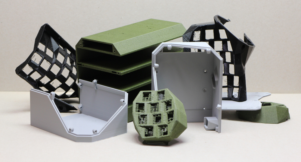 487 grams of plastic in total. The grey parts are add:north X-PLA, the black parts various leftover PLA of unknown varieties, and the green is PrimaSelect Carbon “Army Green”, a PETG carbon-fibre blend.
