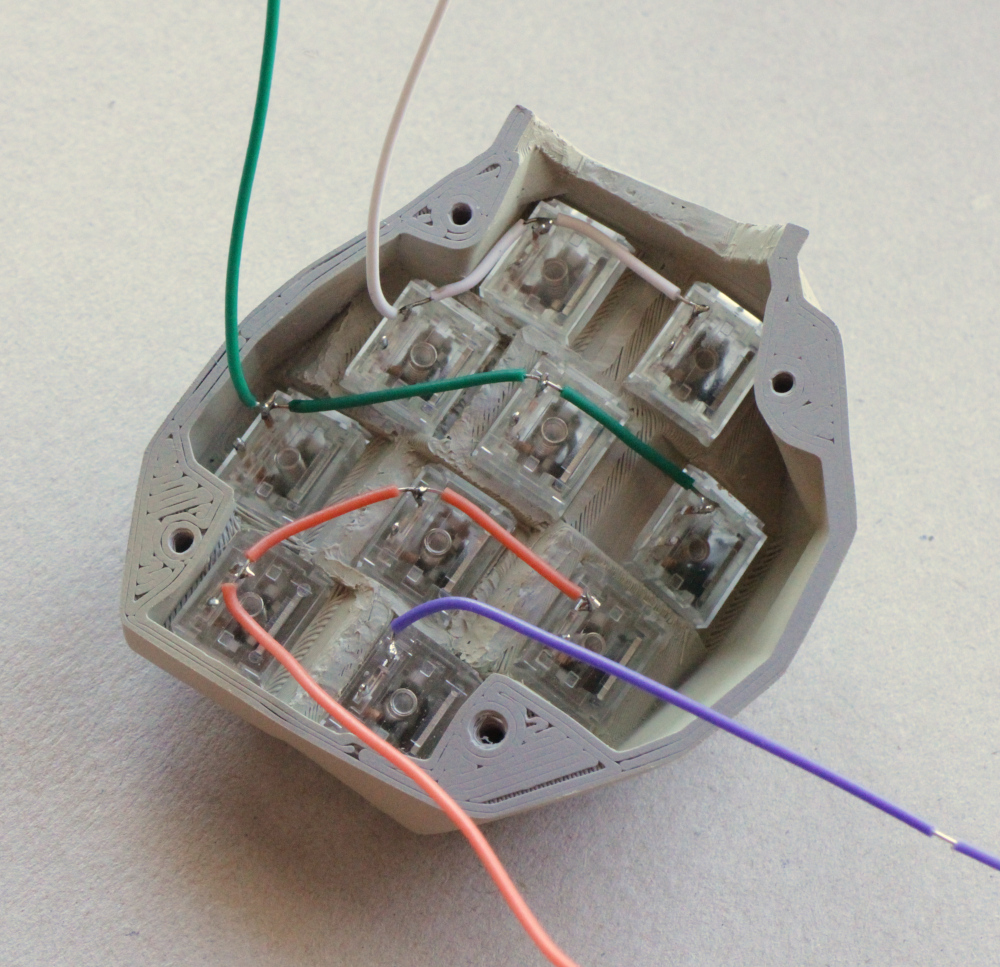 Concertina v0.7.0 top columns The second stage of wiring up the right-hand key clusters. In galleries: Concertina v0.7.0 build-guide illustrationskeyboard Build guides