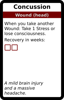 Concussion 1 copy. In galleries: Head Wound deck Horror Cards graphicsCreative Commons Horror Cards game design TRPG