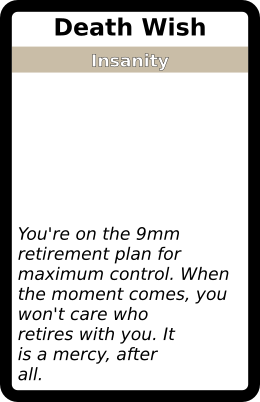 Death Wish 1 copy. In galleries: Insanity deck Horror Cards graphicsHorror Cards TRPG game design Creative Commons
