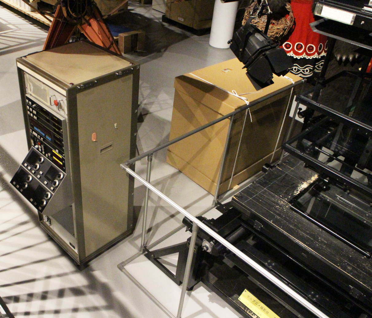 Ett stycke animationshistoria: En pensionerad flerplansrigg med tillhörande kontrollstation, från en något senare era än The Reluctant Dragon (1941).