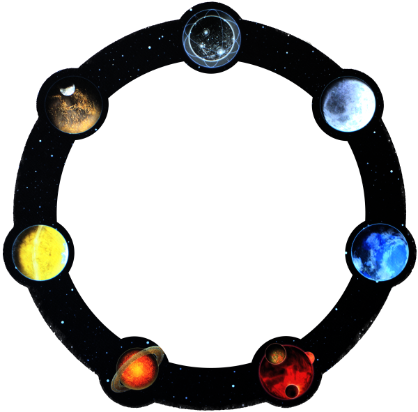 Gaiaprojektet, basplaneternas hjul Retuscherat foto av bonuspoängbrädets baksida. Den förlorade planeten är borttagen, liksom brädets mitt.