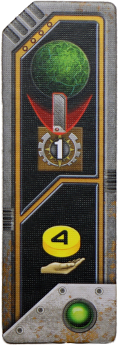 Gaiaprojektet, omgångsförstärkare med gaiabonus Foto av komponent. Översättningen av engelskans “round booster” till “omgångsförstärkare” är tagen från Youtubekanalen Lär dig spela.
