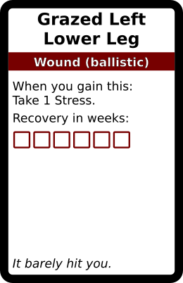 Grazed Left Lower Leg 1 copy. In galleries: Ballistic Wound deck Horror Cards graphicsCreative Commons game design TRPG Horror Cards