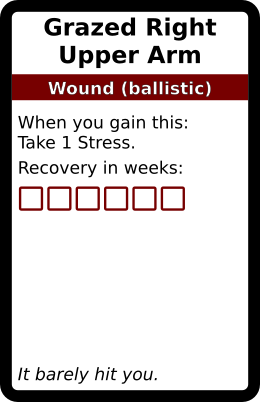 Grazed Right Upper Arm 1 copy. In galleries: Ballistic Wound deck Horror Cards graphicsCreative Commons game design TRPG Horror Cards