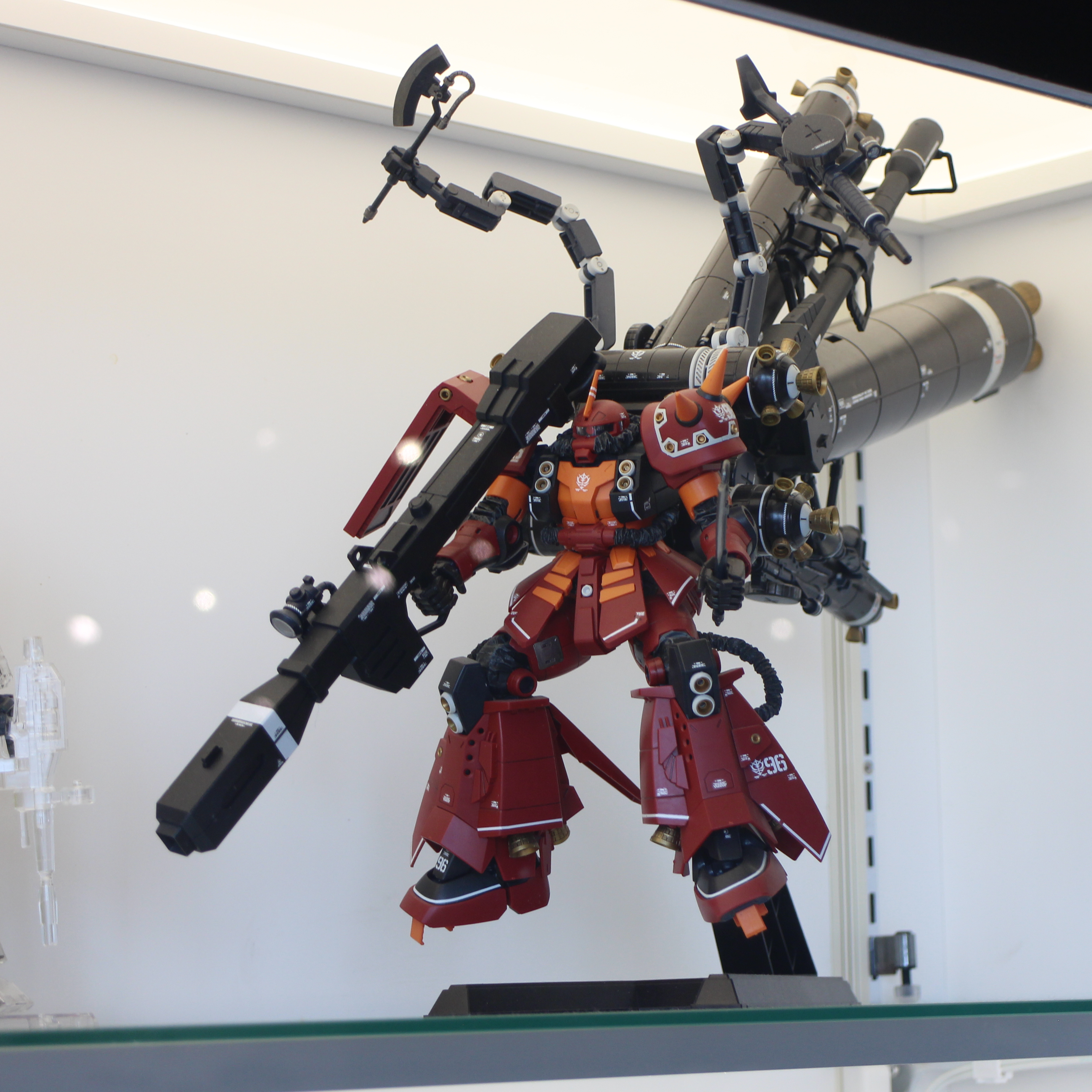 En “Psycho Zaku” utrustad för rymdoperationer, i butiken på Gundam Factory. Jag tror att plastbyggsatsen hör till den lilla gren av franchisen som heter Gundam Thunderbolt.