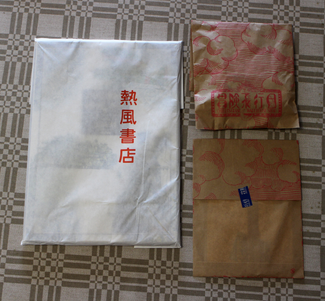 Till vänster inslagningen från bokhandeln Neppū Shoten, till höger den från Ghibli Parks huvudsakliga butik. Detta är vad åtminstone 20% av personalen gör på dagarna.