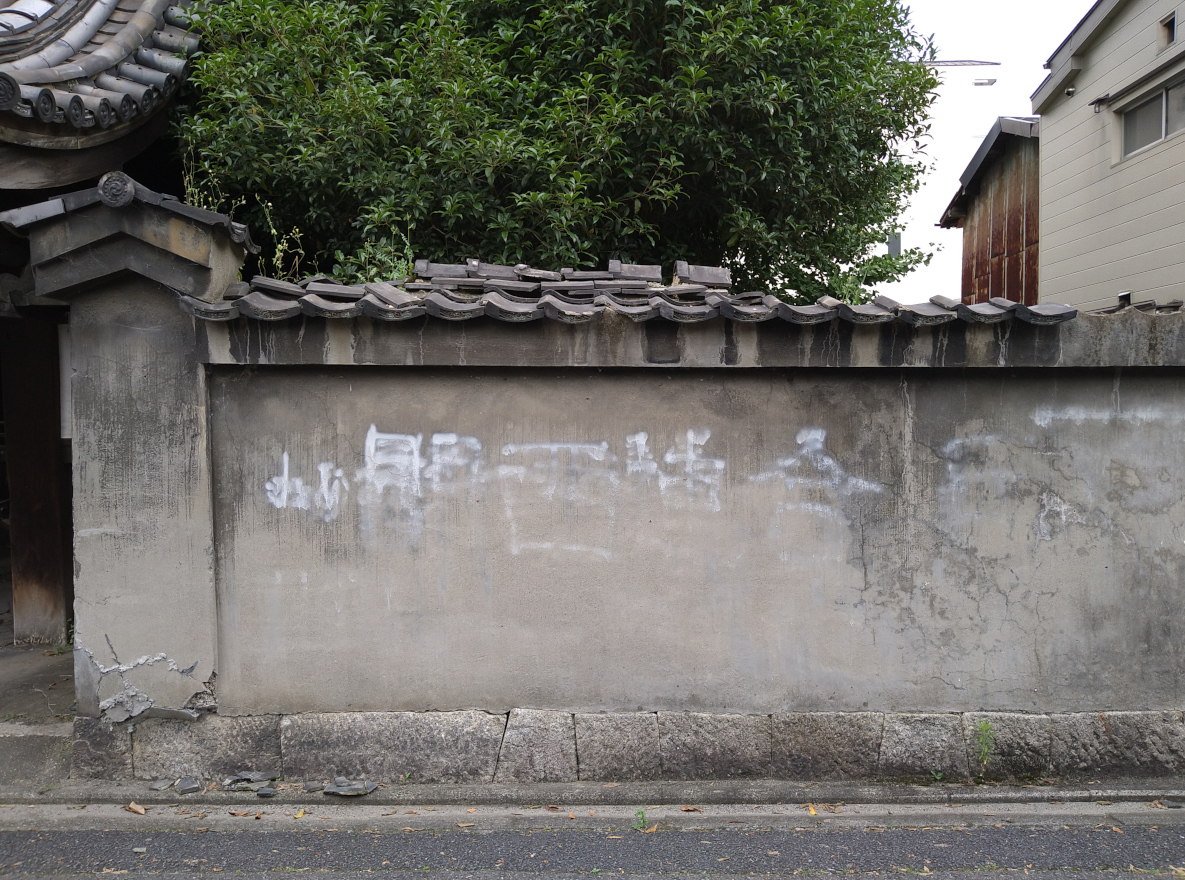 Något mycket sällsynt: Sprejat klotter i en vältrafikerad offentlig miljö i Japan, och dessutom bestående av kanji, utan färg, bild eller tag. Jämför Klotter på Hamanako.