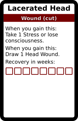 Lacerated Head 1 copy. In galleries: Cut Wound deck Horror Cards graphicsCreative Commons Horror Cards TRPG game design