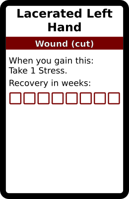 Lacerated Left Hand 1 copy. In galleries: Cut Wound deck Horror Cards graphicsCreative Commons game design TRPG Horror Cards