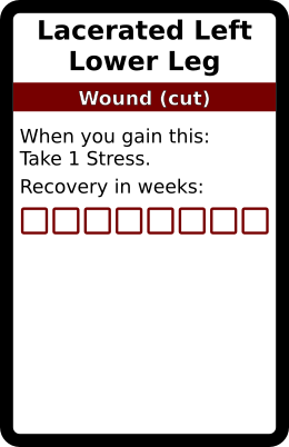 Lacerated Left Lower Leg 1 copy. In galleries: Cut Wound deck Horror Cards graphicsCreative Commons game design TRPG Horror Cards
