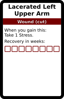Lacerated Left Upper Arm 1 copy. In galleries: Cut Wound deck Horror Cards graphicsCreative Commons game design TRPG Horror Cards