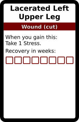 Lacerated Left Upper Leg 1 copy. In galleries: Cut Wound deck Horror Cards graphicsCreative Commons game design TRPG Horror Cards