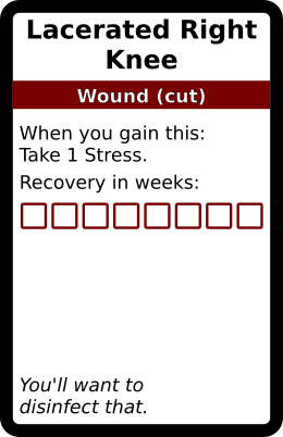 Lacerated Right Knee 1 copy. In galleries: Cut Wound deck Horror Cards graphicsCreative Commons game design TRPG Horror Cards