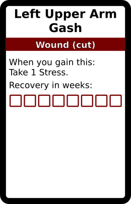 Left Upper Arm Gash 1 copy. In galleries: Cut Wound deck Horror Cards graphicsCreative Commons game design TRPG Horror Cards
