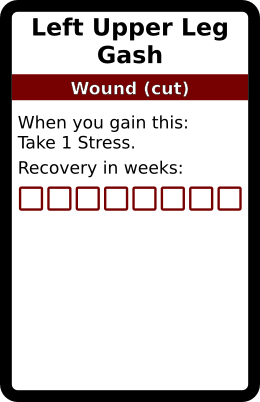 Left Upper Leg Gash 1 copy. In galleries: Cut Wound deck Horror Cards graphicsCreative Commons game design TRPG Horror Cards