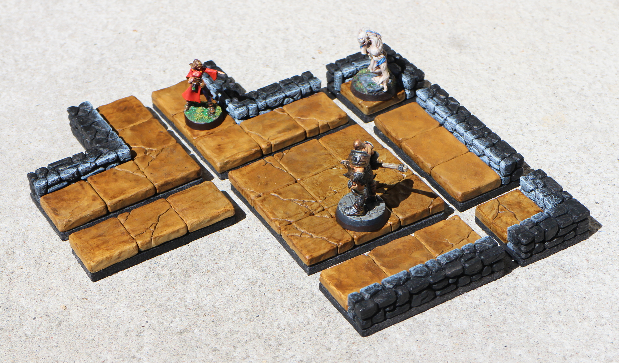 Modular dungeon POC 2 Exploded view. The floor tiles on each of these pieces were glued to each other and had to be scrapped, but no other glue was used. The wall pieces were rescued, largely unmodified, into the next stage of design. Reaper Miniatures In galleries: Modular dungeon POC Hirst Arts dungeon terrainHirst Arts miniature terrain