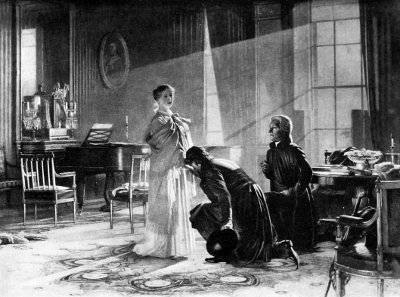 Gravyr av Emery Walker föreställande prinsessan Victoria, på morgonen då hon blir drottning.