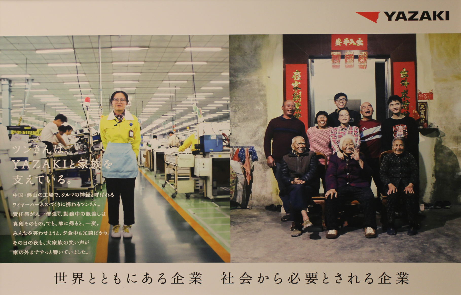 Planschen berättar om en “Tsun-san” (Tzun?) som jobbar på Yazakis fabrik i Foshan, Kina, där hon tillverkar kabelkoppel till bilar. Yazaki marknadsför sig härmed som ett medkännande företag som är “med världen” (世界とともにある), och inte alls en jätte som väljer off-shoring för vinstens skull.