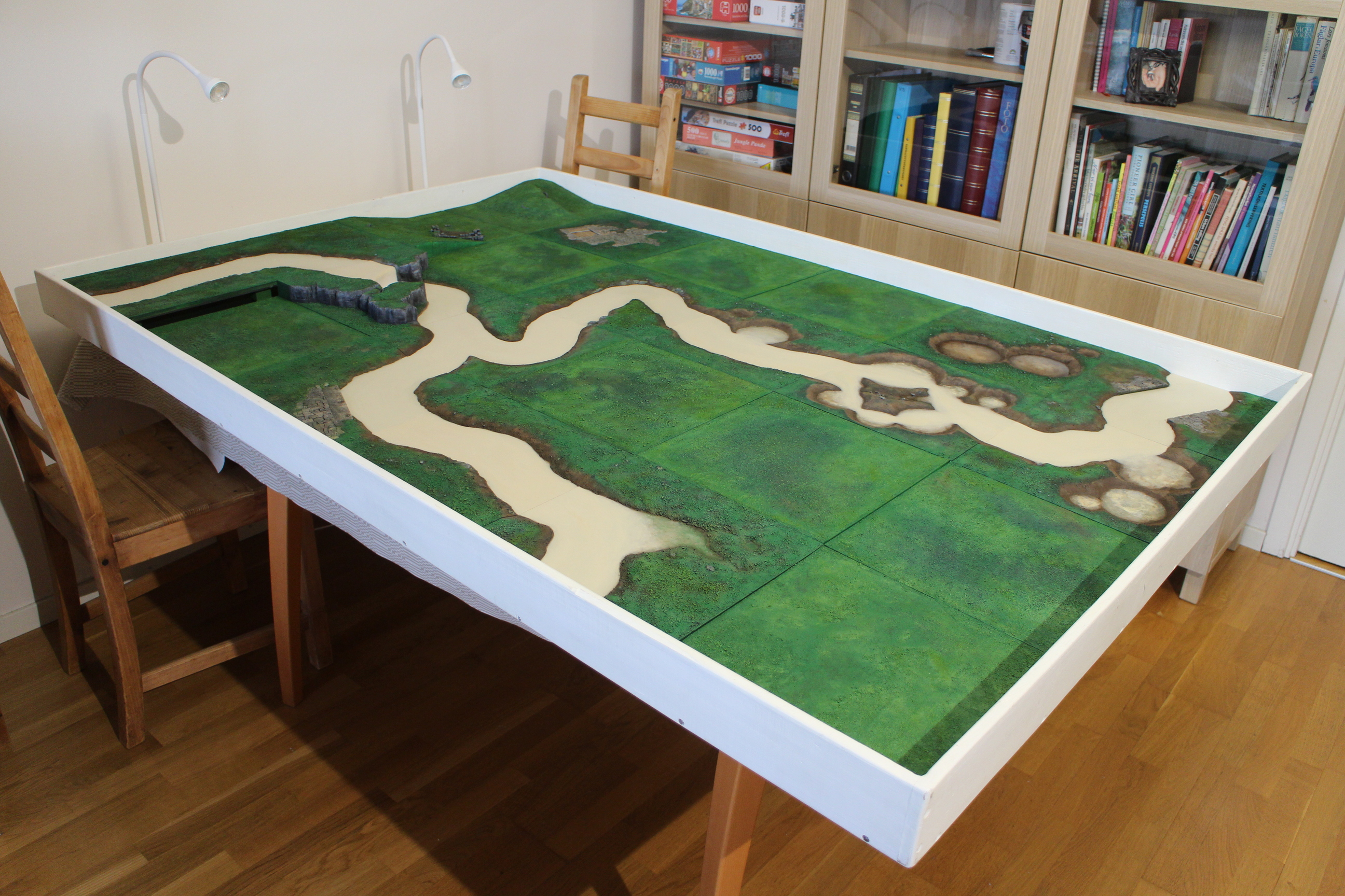 River setup, ground level The enclosure filled up with 24 土 modules but no extra cliff faces to cover the vertical gaps. 38 40 90 35 82 87 93 85 83 39 91 94 81 36 86 37 24 29 34 84 89 30 88 92 In galleries: River setup, 2022wargame board miniature terrain