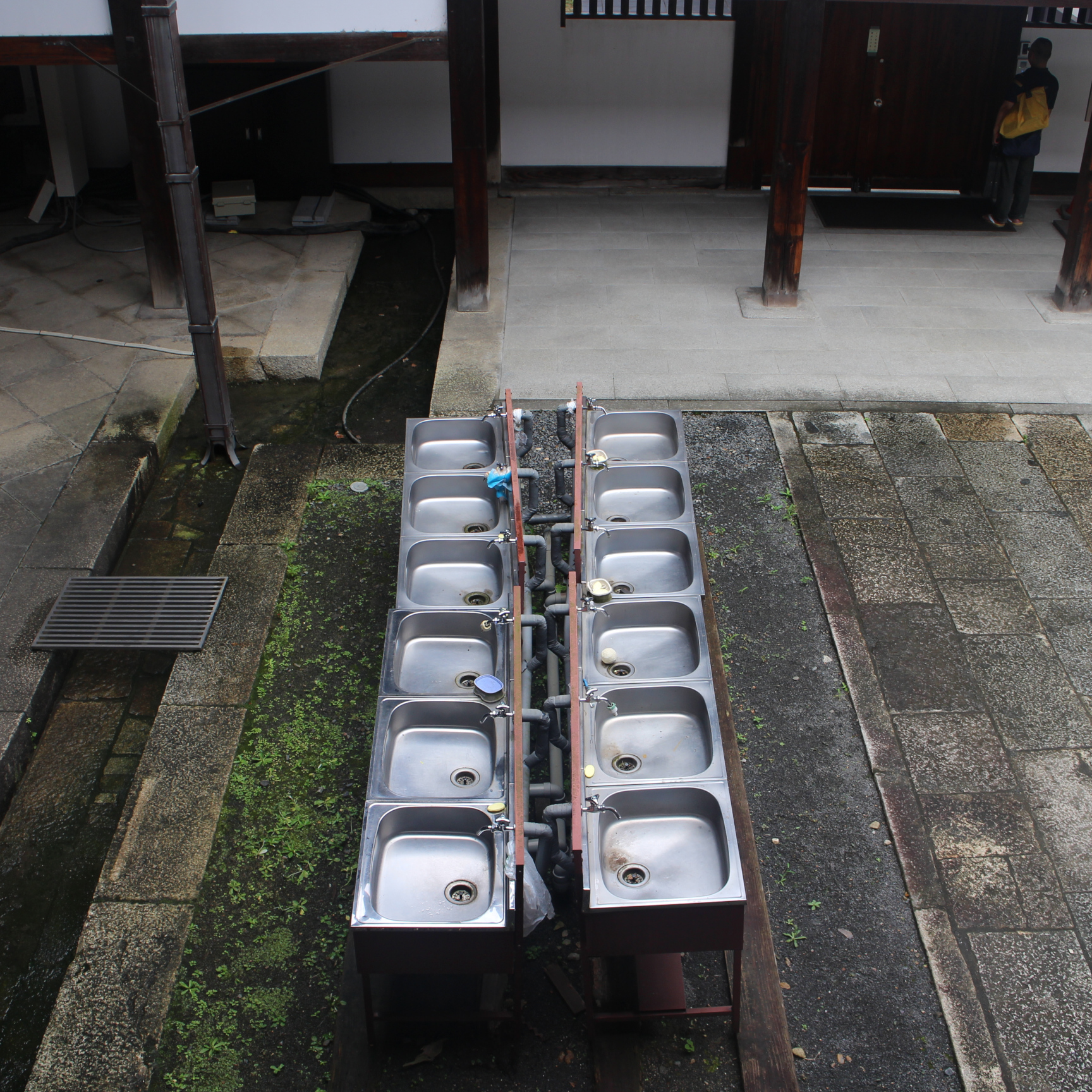 De här tvättkaren står lite snett på innergården mellan två av världens största och vackraste träbyggnader. Det finns ett betydligt tjusigare chōzuya för att tvätta händerna ute på den östra gården.