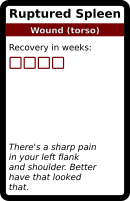 Ruptured Spleen 1 copy. In galleries: Torso Wound deck Horror Cards graphicsHorror Cards TRPG game design Creative Commons