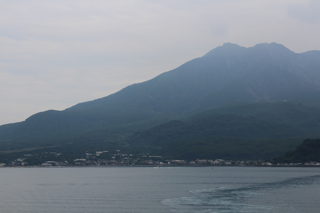 Sakurajima från färjan från ön