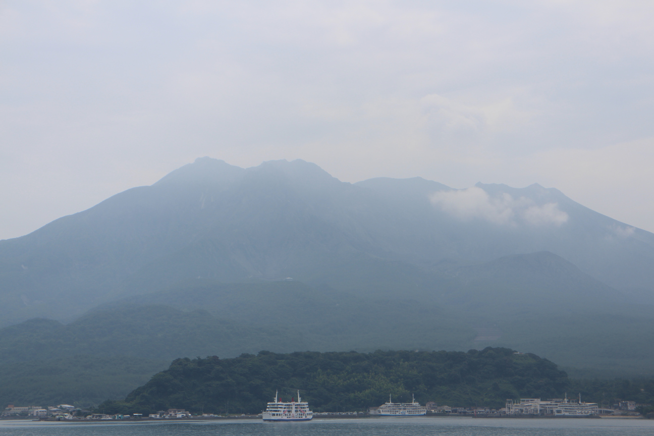 Sakurajima från färjan mot ön
