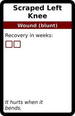 Scraped Left Knee 1 copy. In galleries: Blunt Wound deck Horror Cards graphicsCreative Commons game design TRPG Horror Cards