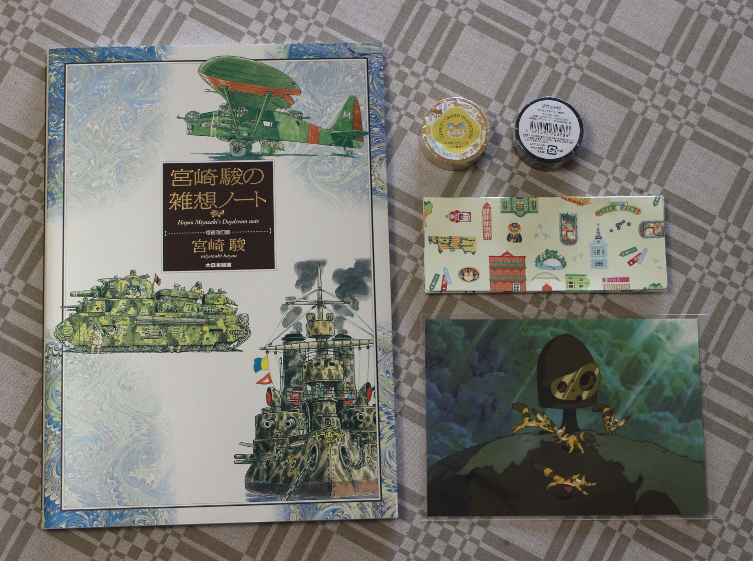 Laputa-roboten är ett vykort. För samma artiklar innan de packades upp, se Inslagning från Ghibli Park.