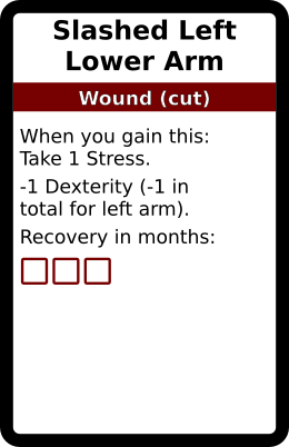 Slashed Left Lower Arm 1 copy. In galleries: Cut Wound deck Horror Cards graphicsCreative Commons Horror Cards TRPG game design