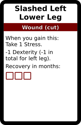 Slashed Left Lower Leg 1 copy. In galleries: Cut Wound deck Horror Cards graphicsCreative Commons game design TRPG Horror Cards