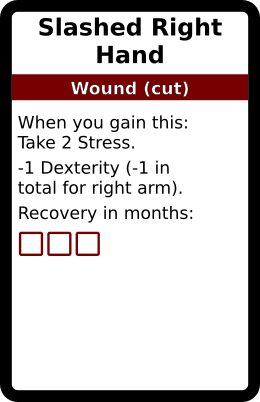 Slashed Right Hand 1 copy. In galleries: Cut Wound deck Horror Cards graphicsCreative Commons game design TRPG Horror Cards