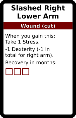 Slashed Right Lower Arm 1 copy. In galleries: Cut Wound deck Horror Cards graphicsCreative Commons game design TRPG Horror Cards