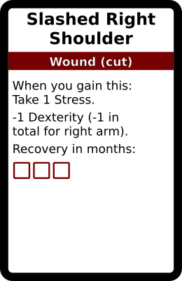 Slashed Right Shoulder 1 copy. In galleries: Cut Wound deck Horror Cards graphicsHorror Cards TRPG game design Creative Commons