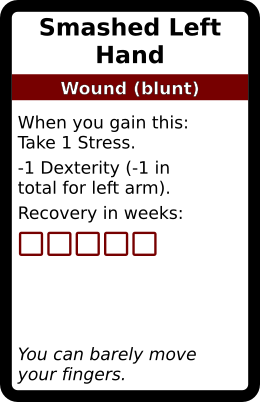 Smashed Left Hand 1 copy. In galleries: Blunt Wound deck Horror Cards graphicsCreative Commons Horror Cards game design TRPG